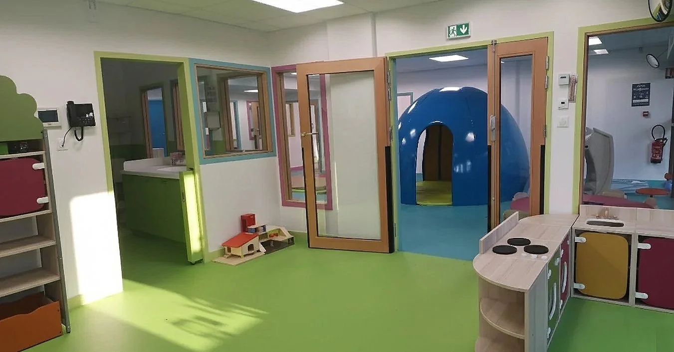Au sein d’un immeuble de bureaux, il s’agissait de transformer un ensemble de bureaux en un lieu d’accueil pour les enfants en bas-âge, répondant aux normes spécifiques aux crèches et au cahier des charges du maître d’ouvrage.